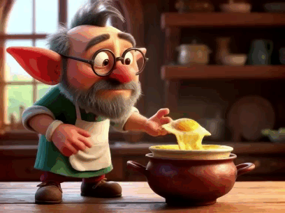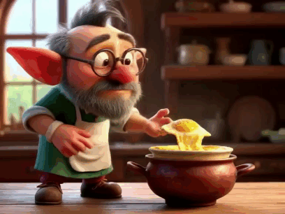 Давным-давно, в старом городке Калитве, жил замечательный гоблин-фантазёр по имени Яков Щука. Маленький ростом, в больших круглых очках, коротко постриженный и бородатый, он был известным мастером кулинарного дела. Одним прекрасным днём Яков решил показать жителям Калитвы новое чудо — воздушный омлет на пару.