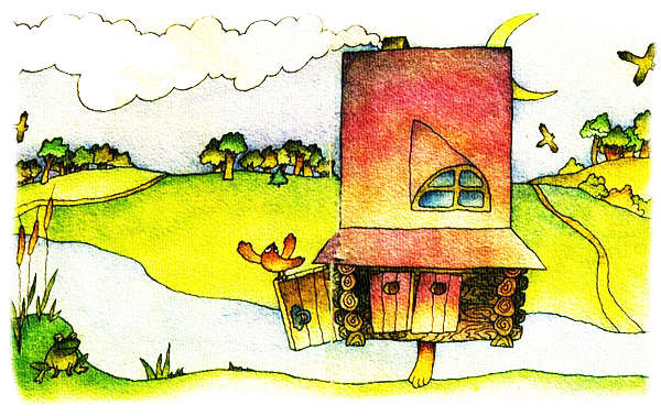 Повернулась волшебная избушка три раза и тихим кошачьим шагом пошла на прежнее место, где всегда стояла.