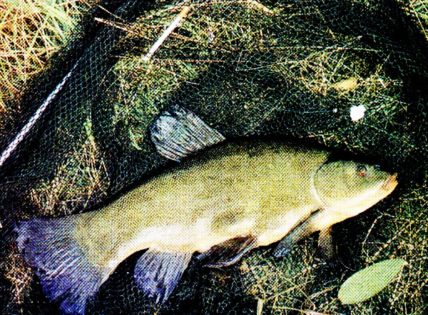 •Этот прекрасный линь попался на комочек хлеба при ловле со дна с применением поплавка из стержня павлиньего пера — такой способ ловли для линя подходит в большей степени, чем для других рыб. |