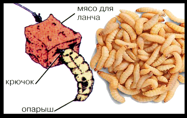 Одно из решений проблемы состоит в использовании опарыша или кусочка травинки, которые помещают между кусочком мяса и загибом крючка для того, что-бы удержать мясо. Кроме этого, если рыба не клюет, опарыш может сделать мясо более привлекательным для рыбы.