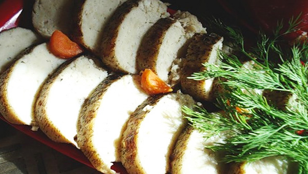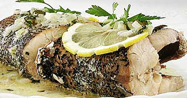Отварить в слегка подсоленной воде луковицу, нарезанные кусочками корни петрушки и сельдерея. Опустить в кипящий отвар подготовленную рыбу на 10 минут, затем шумовкой вынуть ее. Добавить в отвар по вкусу уксус, лавровый лист, гвоздику, черный и душистый перец горошком, сахар. Опустить в кипящий маринад рыбу и проварить ее еще 10 минут. Переложить рыбу в керамическую или стеклянную посуду, залить маринадом и охладить. Через сутки закуска готова. Подать с маринованными овощами, хреном.